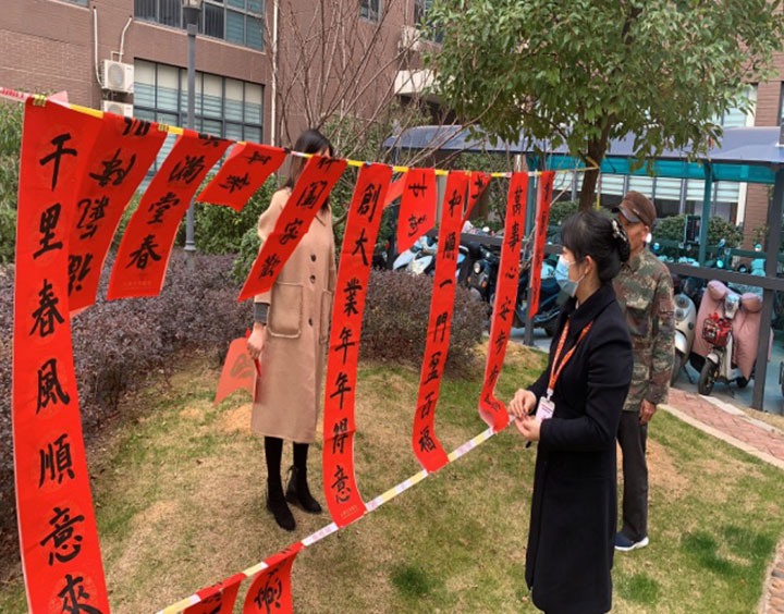 一大早,贛州城投集團(tuán)振興實業(yè)公司黨支部的黨員、入黨積極分子來到創(chuàng)業(yè)家園小區(qū),有的與部分租戶一起掛上燈籠和中國結(jié),營造濃厚的節(jié)日氛圍;有的組織書法志愿者為租戶送春聯(lián)、“福”字;有的組織醫(yī)護(hù)志愿者為租戶開展免費量血壓、血糖、提供醫(yī)藥建議等義診活動。