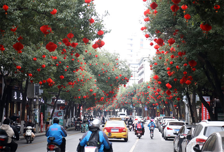 今年除了火紅的燈籠外,此次春節(jié)氛圍營造設(shè)計比去年增加了福字文化元素,順應(yīng)了習(xí)近平總書記的新春祝福語中的“和順致祥 幸福美滿”祝福。同時,依舊延續(xù)了國慶氛圍營造的“晝夜結(jié)合”的特點,安裝了LED燈籠,讓夜晚的城市變得更加璀璨迷人。