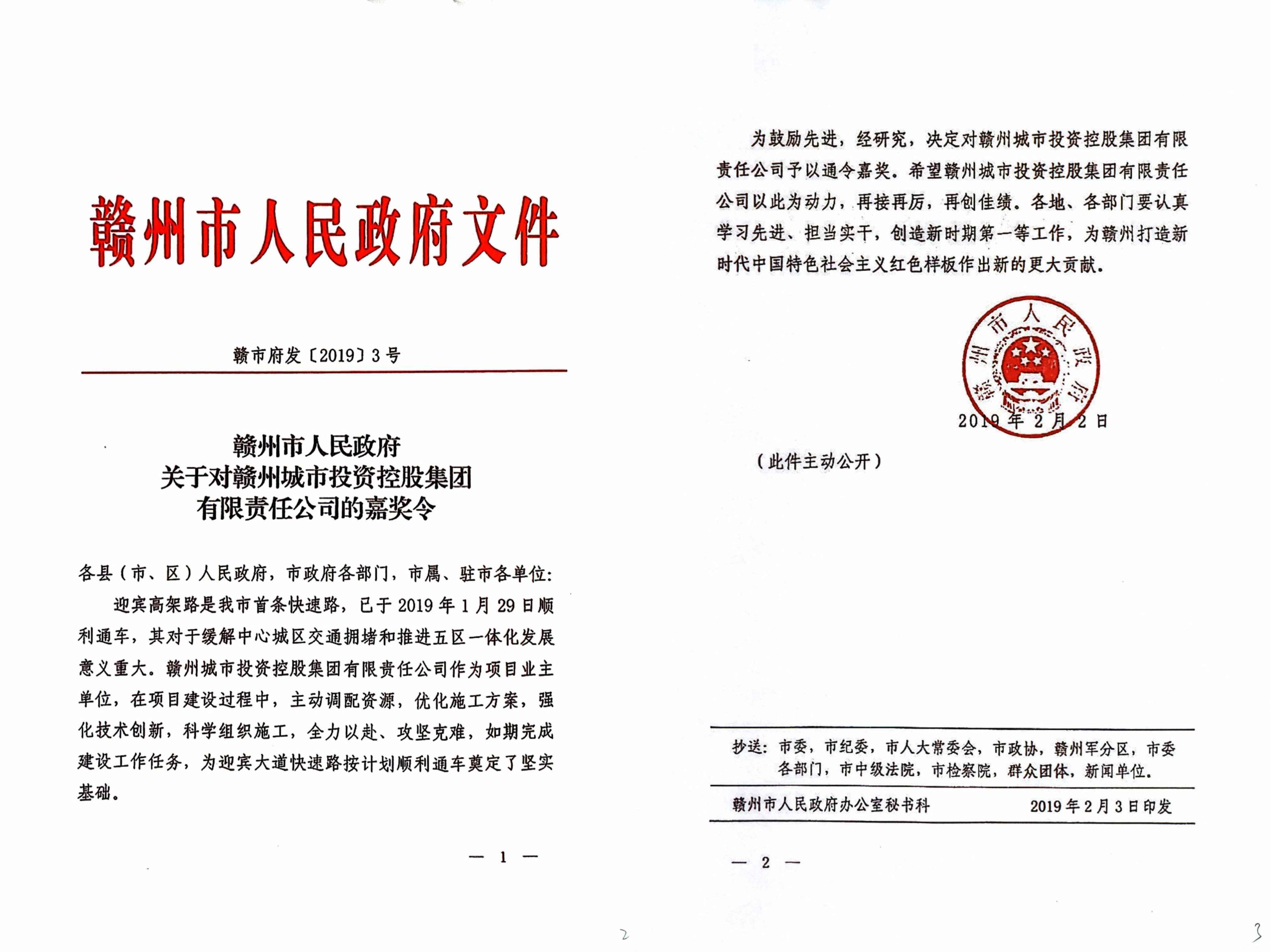2019年贛州市人民政府嘉獎(jiǎng)通報(bào)
