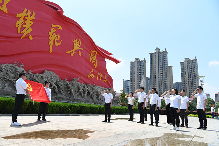 在將軍園三面軍旗及69位革命先烈沖鋒陷陣的大型群雕前,大家重溫入黨誓詞,鏗鏘誓言在將軍廣場(chǎng)回蕩,黨員們對(duì)自身的擔(dān)當(dāng)和使命都有了更加深刻的領(lǐng)悟。