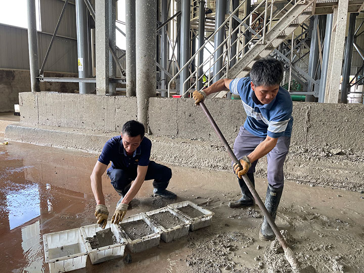 6月5日,利用周末休息時(shí)間,曹惠組織生產(chǎn)一線黨員加班加點(diǎn),利用生產(chǎn)過程中產(chǎn)生的廢料混凝土,將其變廢為寶進(jìn)行“加工”,制成60余塊磚。