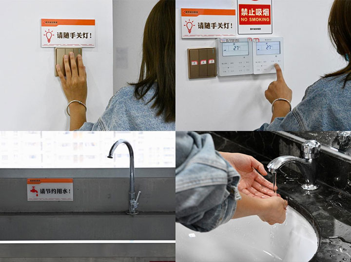 在贛州城投集團(tuán)辦公區(qū)域6—14樓、各子公司(含合資子公司)以及工程項(xiàng)目部辦公區(qū),在電燈開(kāi)關(guān)邊上、衛(wèi)生間洗手區(qū)等區(qū)域,顯眼處均張貼了各種節(jié)能降耗宣傳標(biāo)語(yǔ),引導(dǎo)職工節(jié)約用水、用電,避免使用一次性紙杯、餐盒等消耗品,鼓勵(lì)職工使用新能源汽車(chē)、多乘坐公共交通工具出行,減少使用私家車(chē),倡導(dǎo)將綠色低碳理念融入生活習(xí)慣。廣大職工也紛紛從身邊點(diǎn)滴的小事做起,將節(jié)能減排理念延伸到工作、生活的各環(huán)節(jié),在集團(tuán)上下形成厲行節(jié)約、反對(duì)浪費(fèi)的良好局面。