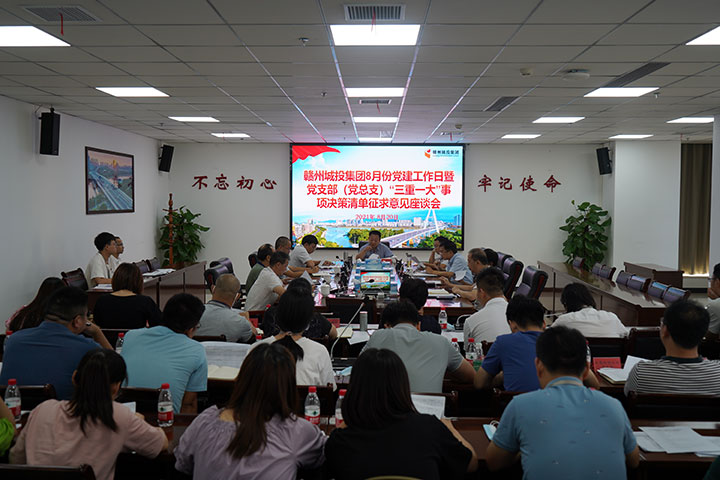 8月20日下午,贛州城投集團(tuán)黨委召開(kāi)8月份黨建工作日暨黨支部(黨總支)“三重一大”事項(xiàng)決策清單征求意見(jiàn)座談會(huì),傳達(dá)學(xué)習(xí)市國(guó)資委黨委8月份黨建工作日座談會(huì)精神,并就部分支部擬定的《重大事項(xiàng)決策清單》進(jìn)行了討論。集團(tuán)黨委副書記黃家偉主持會(huì)議,集團(tuán)各黨支部(黨總支)書記以及相關(guān)部門負(fù)責(zé)人參加會(huì)議。
