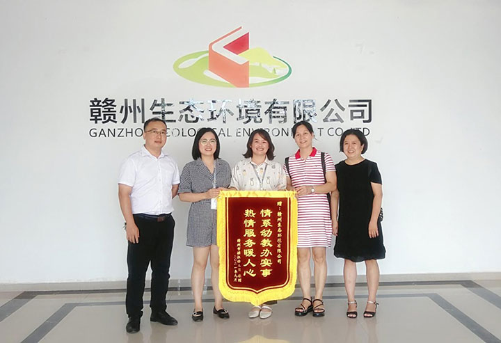 9月23日上午,贛州市濱江幼兒園園長(zhǎng)及家長(zhǎng)代表來到生態(tài)環(huán)境公司,為公司送來一面寫著“熱情服務(wù)暖人心,情系幼教辦實(shí)事”的感謝錦旗。