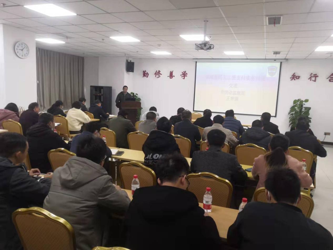 為進(jìn)一步加強(qiáng)贛州城投集團(tuán)在建工程項(xiàng)目農(nóng)民工工資支付規(guī)范化管理,提升項(xiàng)目建設(shè)管理人員管理水平,切實(shí)做好農(nóng)民工工資支付保障工作,近日,贛州城投集團(tuán)黨委黨校舉辦保障農(nóng)民工工資支付專題培訓(xùn)。根據(jù)集團(tuán)黨委黨校第二學(xué)期教學(xué)計(jì)劃安排,此次培訓(xùn)由工程管理公司承辦,贛州市勞動(dòng)監(jiān)察局監(jiān)察一科科長王貴福受邀前來集團(tuán)授課,集團(tuán)各在建項(xiàng)目負(fù)責(zé)人、勞資監(jiān)管員、子公司共50余人參加培訓(xùn)。