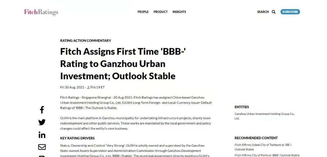 2021年,積極推進境外評級,并成功于8月20日獲惠譽國際信用評級機構授予BBB-國際投資級評級,為境外債發(fā)行奠定了良好基礎。10月12日,在香港聯(lián)交所成功發(fā)行首單境外高級無抵押信用債券,金額1.5億美元,票面利率3.0%,期限3年,創(chuàng)江西省內自身信用評級發(fā)行票面利率最低,成為贛州市首家發(fā)行境外債券的市級國有平臺企業(yè)。集團發(fā)行境外債工作被列為全省、全市典型案例之一。