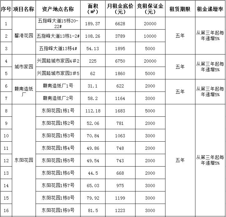 贛州振興實(shí)業(yè)有限責(zé)任公司委托江西潤資拍賣有限公司,定于2020年10月27日10:00開始在贛州市公共資源交易中心(長征大道9號)進(jìn)行國有資產(chǎn)公開招租,現(xiàn)歡迎符合條件的單位或個(gè)人前來報(bào)名參加競租。