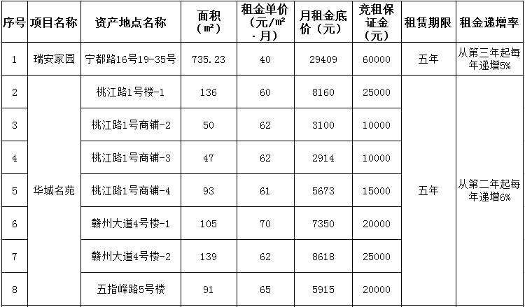 贛州振興實(shí)業(yè)有限責(zé)任公司委托江西潤資拍賣有限公司,定于2020年10月22日10:00開始在贛州市公共資源交易中心(長征大道9號)進(jìn)行國有資產(chǎn)公開招租,現(xiàn)歡迎符合條件的單位或個人前來報(bào)名參加競租。