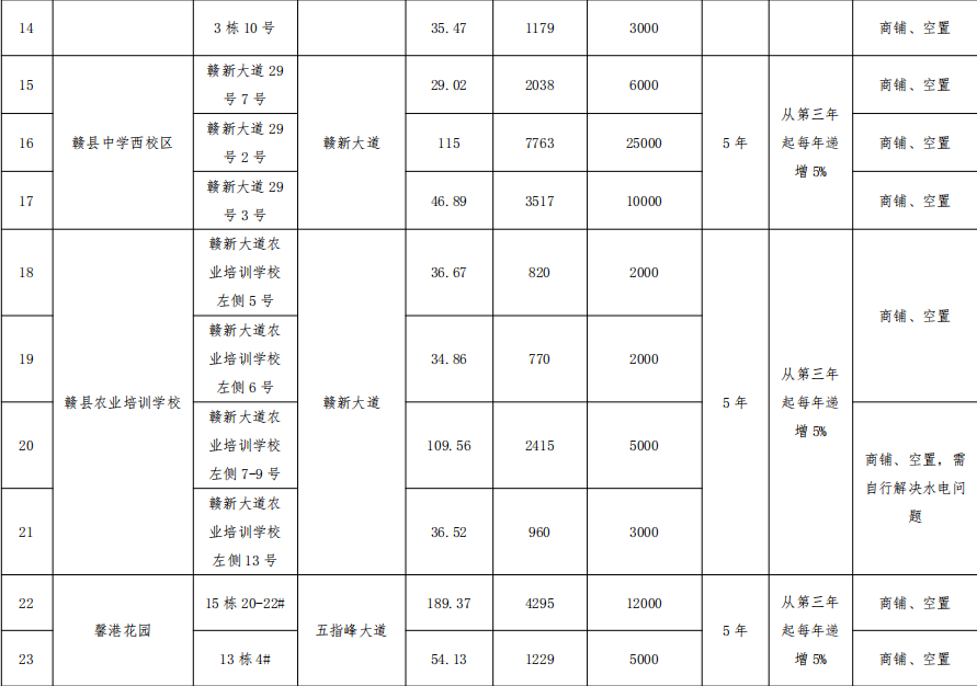 贛州振興實(shí)業(yè)有限責(zé)任公司五指峰路等四十一宗商鋪、寫字樓公開招租公告