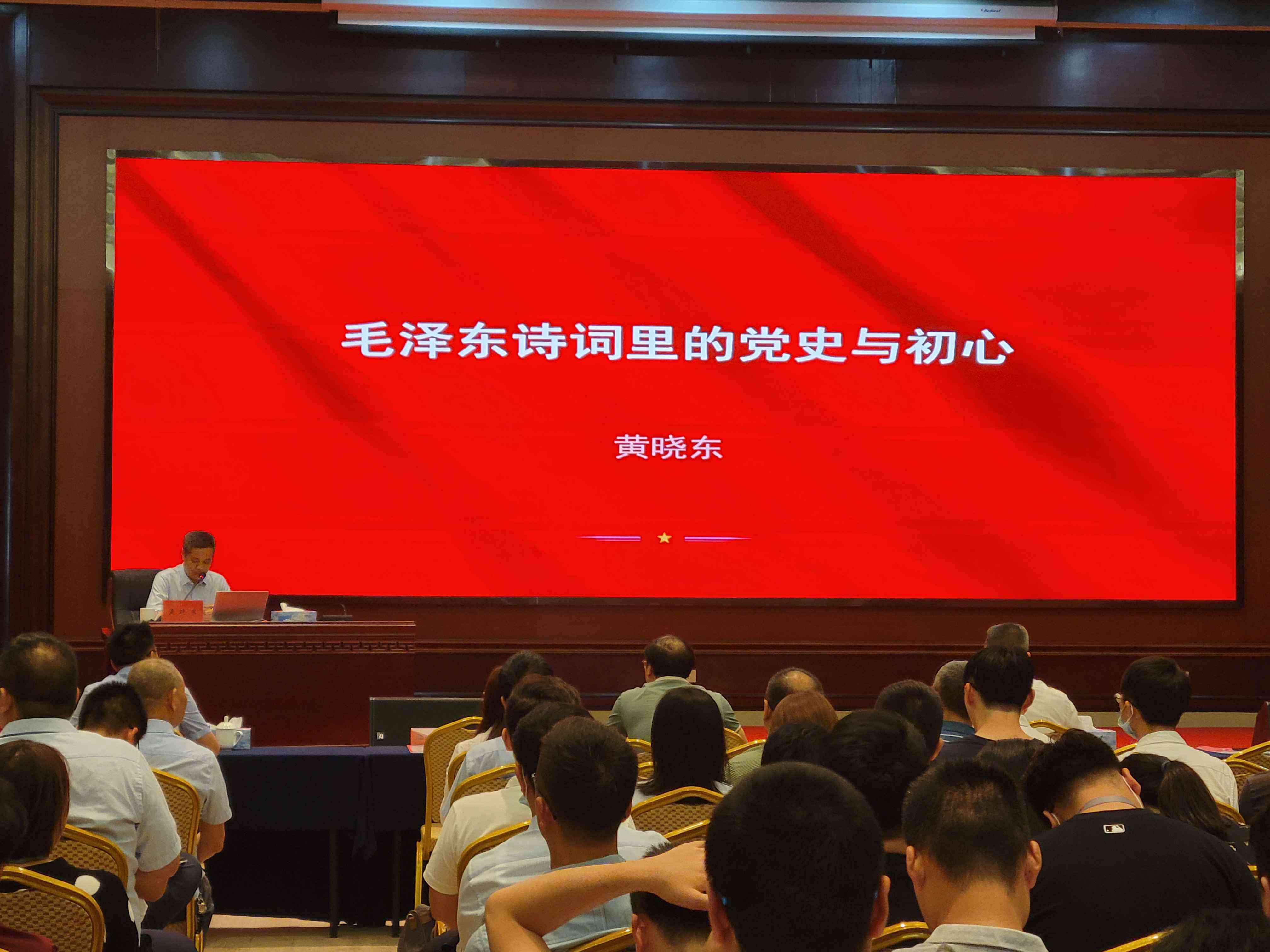 黃曉東同志以《毛澤東詩(shī)詞里的黨史與初心》為主題,以毛澤東同志的革命道路為主線,品讀毛澤東同志不同時(shí)期的詩(shī)詞,從離愁別恨里的黨史與初心等10個(gè)方面,回溯偉人立志報(bào)國(guó)救亡、書生意氣的青年時(shí)代、艱苦卓絕的革命崢嶸歲月、如火如荼的社會(huì)主義革命和建設(shè)歷程,彰顯偉人獨(dú)具魅力的個(gè)性情懷和豪邁氣概,闡述了共產(chǎn)黨人的初心與使命。