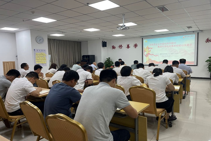 王遠(yuǎn)平從馬克思主義哲學(xué)的角度,結(jié)合自身學(xué)習(xí)黨史的心得體會(huì),講述了馬克思主義中國(guó)化的歷史進(jìn)程,梳理了馬克思主義中國(guó)化各個(gè)時(shí)期的重要成果,歸納了馬克思主義中國(guó)化的四個(gè)特征,深刻闡述了馬克思主義中國(guó)化的豐富內(nèi)涵。結(jié)合集團(tuán)實(shí)際,王遠(yuǎn)平從堅(jiān)持問題導(dǎo)向、發(fā)揮人力資源優(yōu)勢(shì)、統(tǒng)籌兼顧等四個(gè)方面就如何推進(jìn)集團(tuán)市場(chǎng)化改革進(jìn)行闡述,引導(dǎo)參會(huì)人員深刻領(lǐng)會(huì)馬克思主義中國(guó)化的經(jīng)驗(yàn)以及啟示,領(lǐng)悟工作方法、指導(dǎo)工作具體實(shí)踐,為集團(tuán)市場(chǎng)化改革做出更大貢獻(xiàn)。