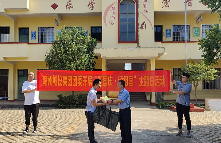 本次活動分兩個階段開展。第一階段,以愛國主義教育為切入點,分別在良田小學(xué)和東山小學(xué)開展。黃家偉帶領(lǐng)團(tuán)員與全體師生開展升國旗、唱國歌活動,在激昂的歌聲中向國旗敬禮、向祖國致敬。隨后,黃家偉代表集團(tuán)黨委向兩所學(xué)校捐贈物資,用于改善當(dāng)?shù)剞r(nóng)村教學(xué)條件。在學(xué)生們課間休息時間,團(tuán)員們還陪伴學(xué)生們上了一堂豐富有趣的體育課。團(tuán)員們還與學(xué)校老師進(jìn)行交流座談,表達(dá)了關(guān)心與寄語。