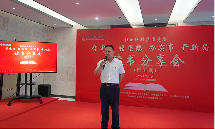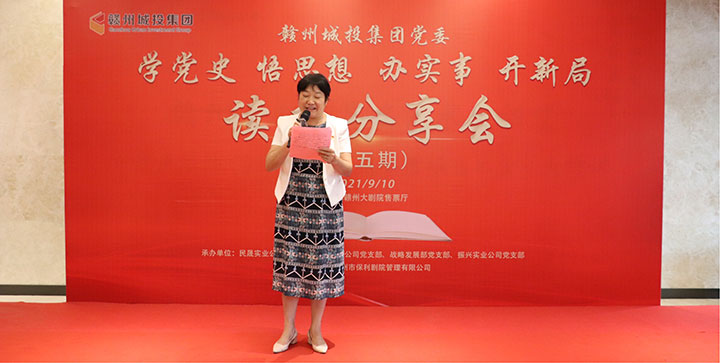 9月10日,為推動黨史學(xué)習(xí)教育有特色、出成效,贛州城投集團(tuán)黨委在贛州大劇院售票廳舉辦“學(xué)黨史 悟思想 辦實事 開新局”黨史學(xué)習(xí)教育第五期讀書分享會。市國資委二級調(diào)研員宋英蒞臨指導(dǎo),集團(tuán)黨委副書記黃家偉出席并作點評講話,集團(tuán)董事會秘書、集團(tuán)相關(guān)部門負(fù)責(zé)人、各黨支部書記及部分黨員參加。
