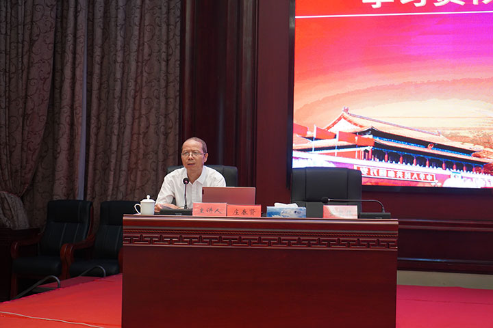 莊春賢以“牢記初心擔(dān)使命,砥礪奮進新征程”為題,從“深刻領(lǐng)會習(xí)近平總書記”七一“重要講話的重大意義,切實把學(xué)習(xí)貫徹講話精神作為一項重大政治任務(wù)抓緊抓好;全面把握習(xí)近平總書記”七一“重要講話的豐富內(nèi)涵,深入理解講話提出的一系列新思想新觀點新論斷;準(zhǔn)確把握習(xí)近平總書記”七一“重要講話的實踐要求,縱深推進新時代贛南蘇區(qū)振興發(fā)展“三個方面”,通過引用偉大的革命先驅(qū)為中華民族的偉大復(fù)興而奔走奮斗的英雄事跡,深刻闡釋了偉大建黨精神譜系和以史為鑒、開創(chuàng)未來”九個必須“的根本要求,對習(xí)近平總書記”七一“重要講話進行了系統(tǒng)闡述和重點解讀。