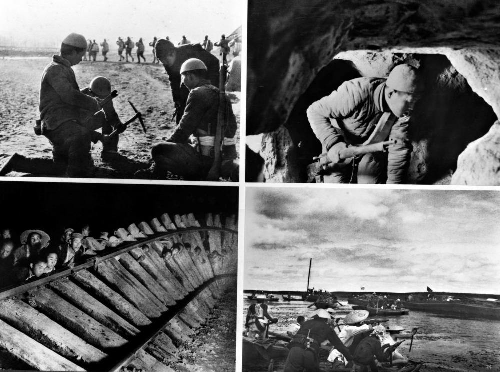 在抗日斗爭中,華北平原敵后軍民創(chuàng)造了很多有效的殲敵方法,發(fā)展了人民戰(zhàn)爭的戰(zhàn)略戰(zhàn)術(shù)。上圖左:地雷戰(zhàn)。上圖右:地道戰(zhàn)。下圖左:破襲戰(zhàn)。下圖右:水上游擊戰(zhàn)(資料照片)。新華社發(fā)