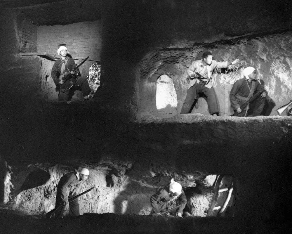 這是平原地區(qū)的民兵正在地道里從一個射擊口轉(zhuǎn)移到另一個射擊口去消滅敵人(資料照片)。新華社發(fā)